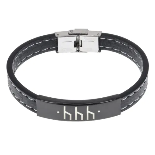 Кожаный браслет с гравировкой славянской рунической формулы.