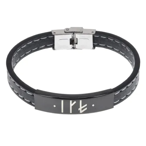 Кожаный браслет с гравировкой славянской рунической формулы.