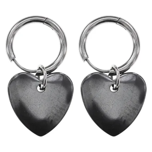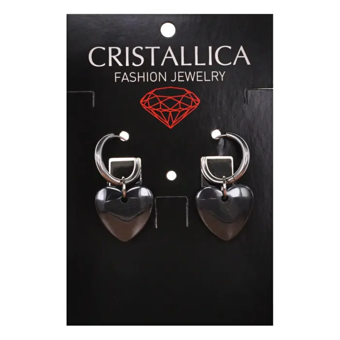 Серьги Конго с синтетическим камнем Гематит, сердце SEC06-02
