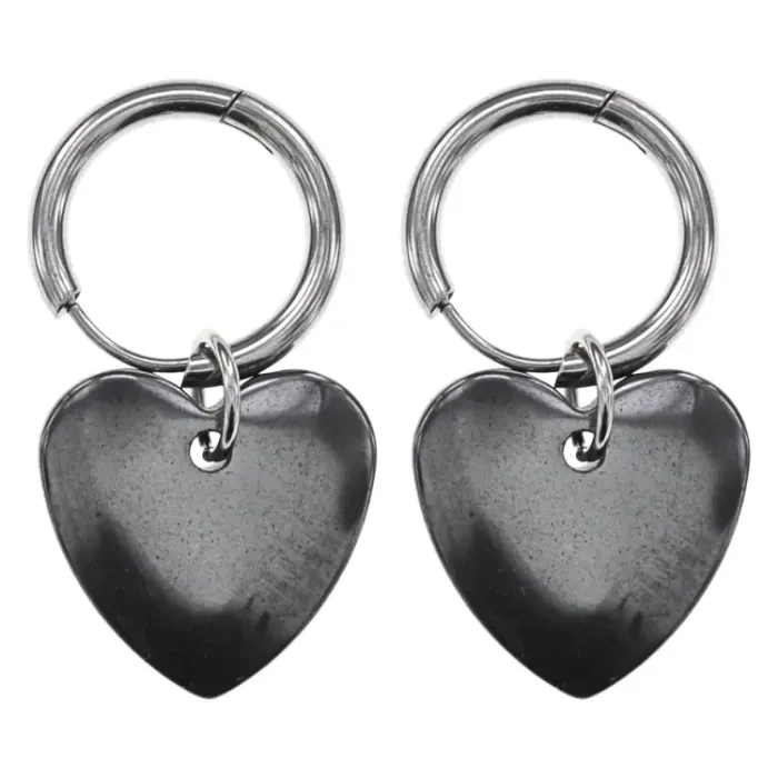 Серьги-конго с швензами в виде сердца, украшенные синтетическим камнем гематит.