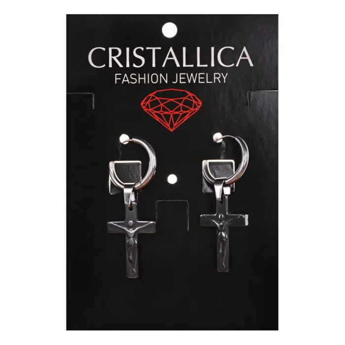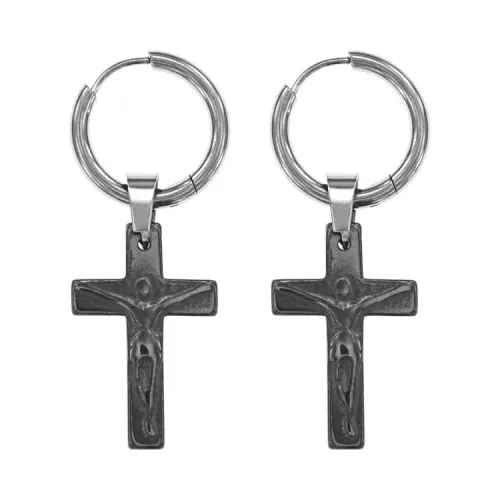 Серьги Конго с синтетическим камнем Гематит, распятие SEC06-04