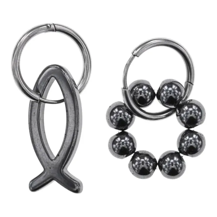 Ассимметричные серьги Конго с синтетическим камнем Гематит, Ихтис SEC06-05