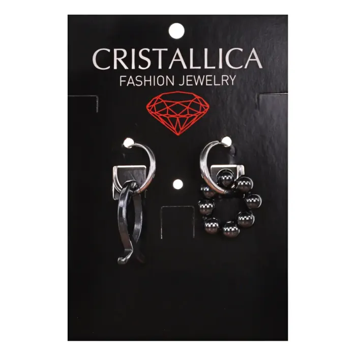 Ассимметричные серьги из гипоаллергенного сплава с синтетическим камнем гематит и швензами типа Конго.