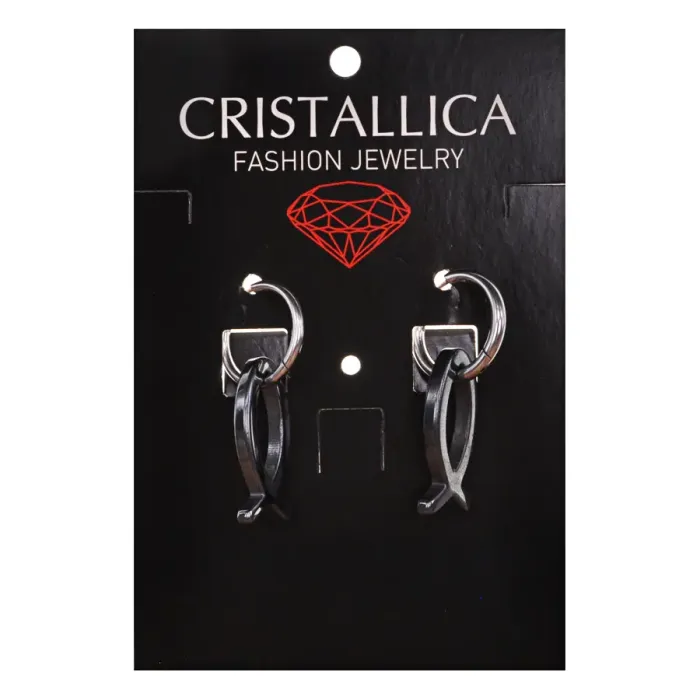 Серьги Конго с синтетическим камнем Гематит, Ихтис SEC06-06