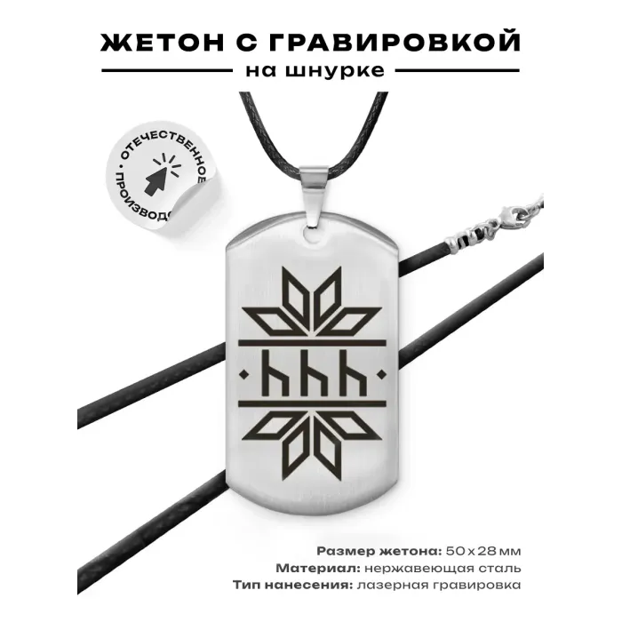Амулет-жетон из нержавеющей стали со славянской рунической формулой Уд.