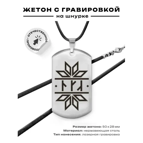 Амулет-жетон со славянской рунической формулой Исцеление. Изготовлен из нержавеющей стали.