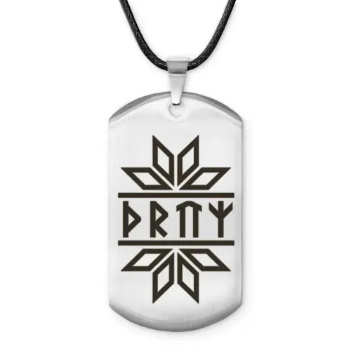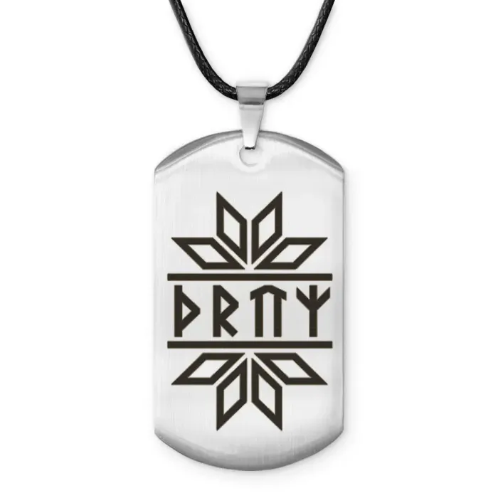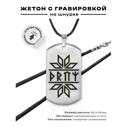 Амулет-жетон из нержавеющей стали со славянской рунической формулой.