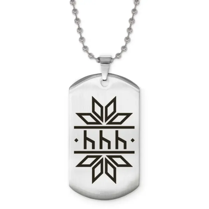 Сувенирный жетон на цепочке с изображением славянской руны Уд. Изготовлен из нержавеющей стали с лазерной гравировкой.