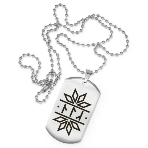 Размеры и комплектация: Размер жетона: 50x28 мм. Длина цепочки: 60 см, регулируется. Упаковка: прозрачный пакет.