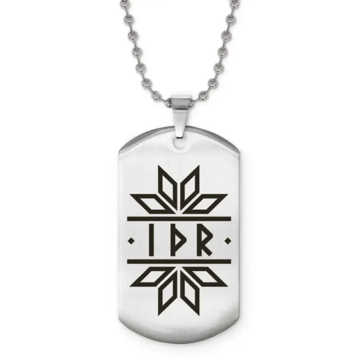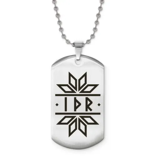 Сувенирный жетон на цепочке с символикой славянских рун. Изготовлен из нержавеющей стали с лазерной гравировкой.