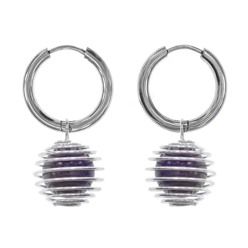 Эти модные симметричные серьги-амулеты из коллекции Cristallica привносят в образ элегантность и стиль. Изготовленные вручную, они имеют швензы «Конго» из гипоаллергенного сплава и украшены натуральным камнем Аметист в подвеске «клетка». Аметист символизирует мир, равновесие и гармонию, традиционно используется для очищения от негатива и облегчения стресса. Серьги имеют диаметр швенз 19 мм, бусин из камня 6 мм и размер сердечка 20х20 мм. Упакованы на чёрной фирменной подложке Cristallica в прозрачный пакет с европодвесом, снабжены этикеткой с описанием значения камня.