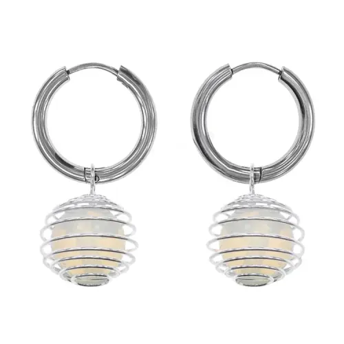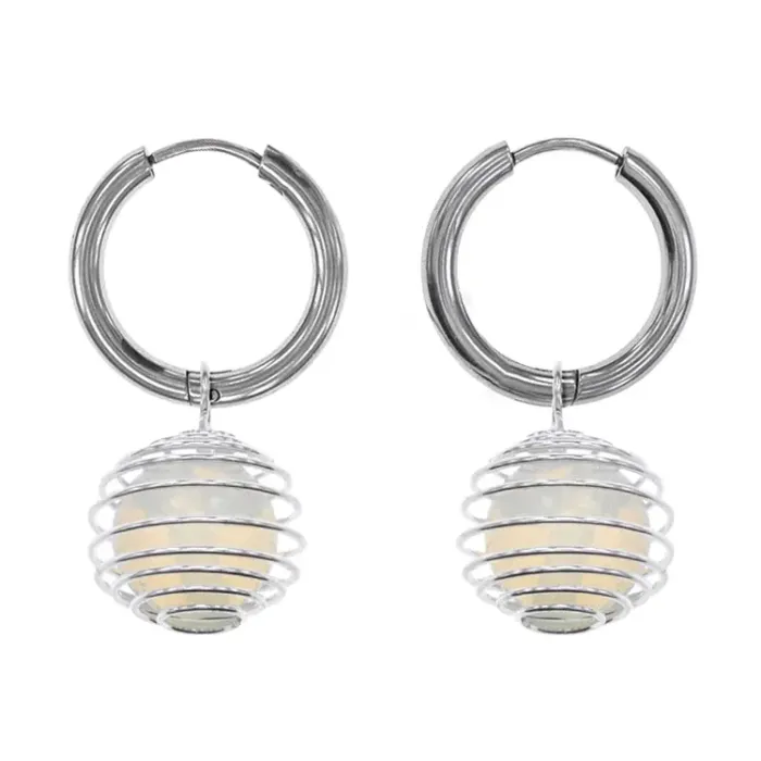 Серьги-амулеты из гипоаллергенного сплава с синтетическим камнем Лунный камень в подвеске «клетка» на швензах «Конго».