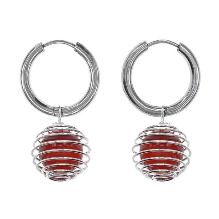 Серьги-амулеты из гипоаллергенного сплава с натуральным сердоликом в подвеске «клетка».