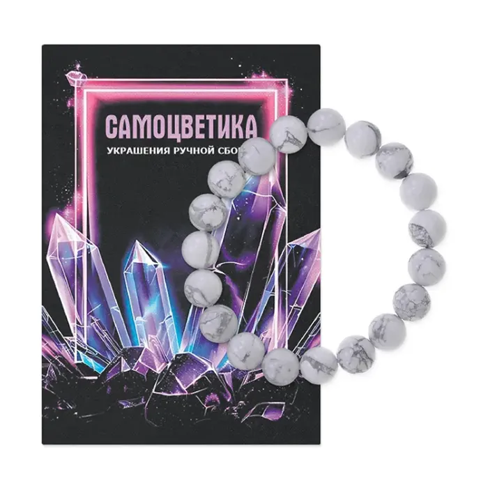 Стрейч-браслет из натурального камня кахолонг с бусинами диаметром 10 мм.