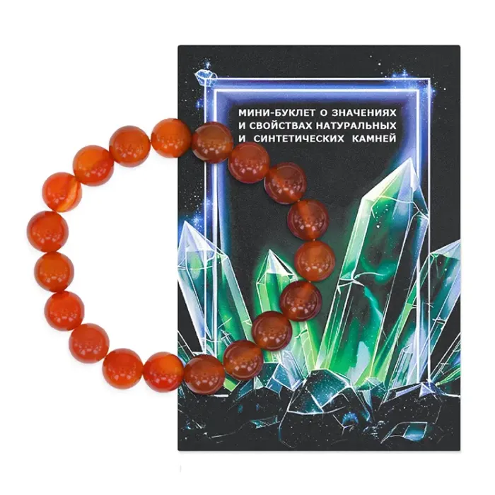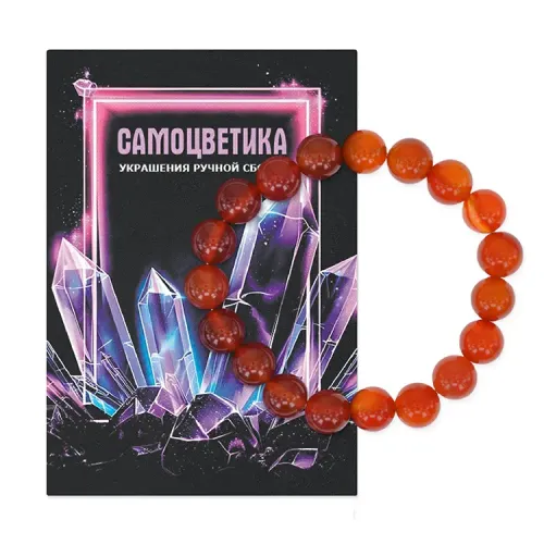 Стрейч-браслет из натурального сердолика, собранный вручную из бусин диаметром 10 мм.