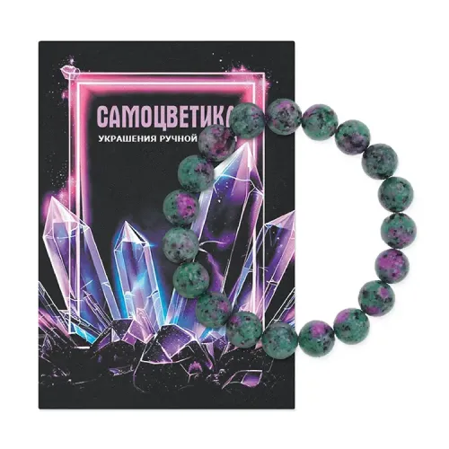 Стрейч-браслет, собранный вручную из синтетических каменных бусин.