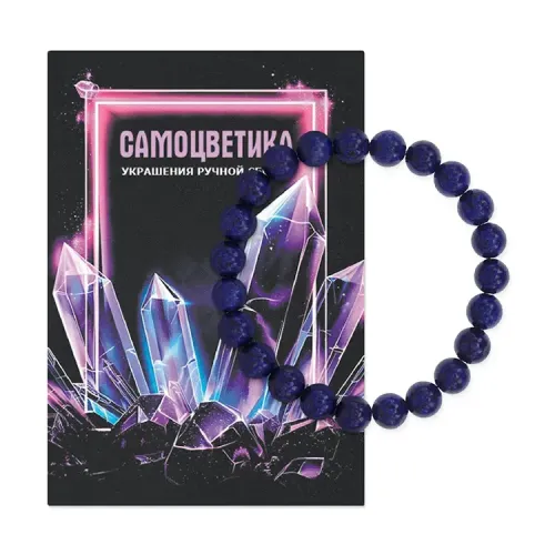 Стрейч-браслет из натурального лазурита, собранный вручную из бусин диаметром 8 мм.