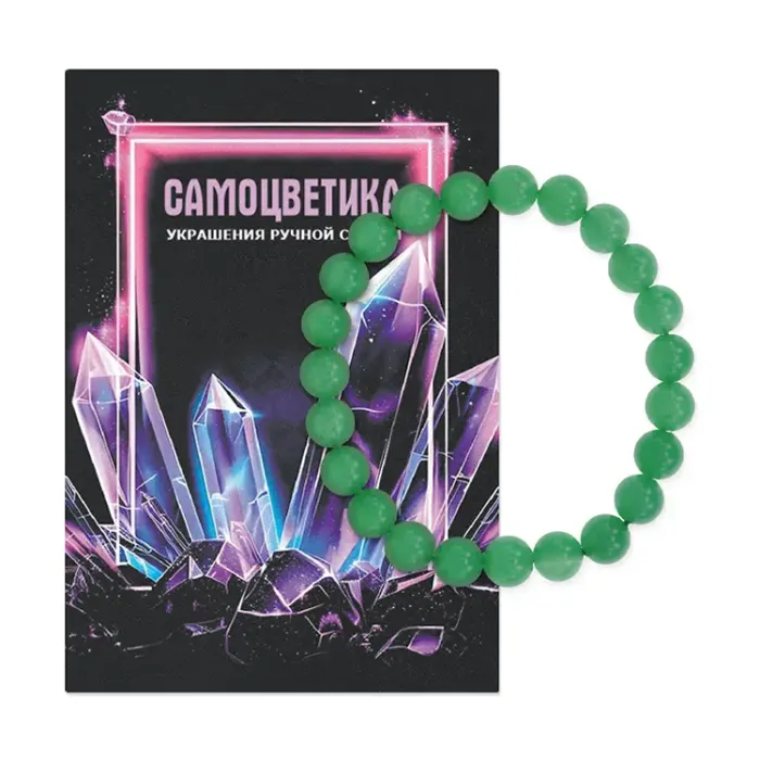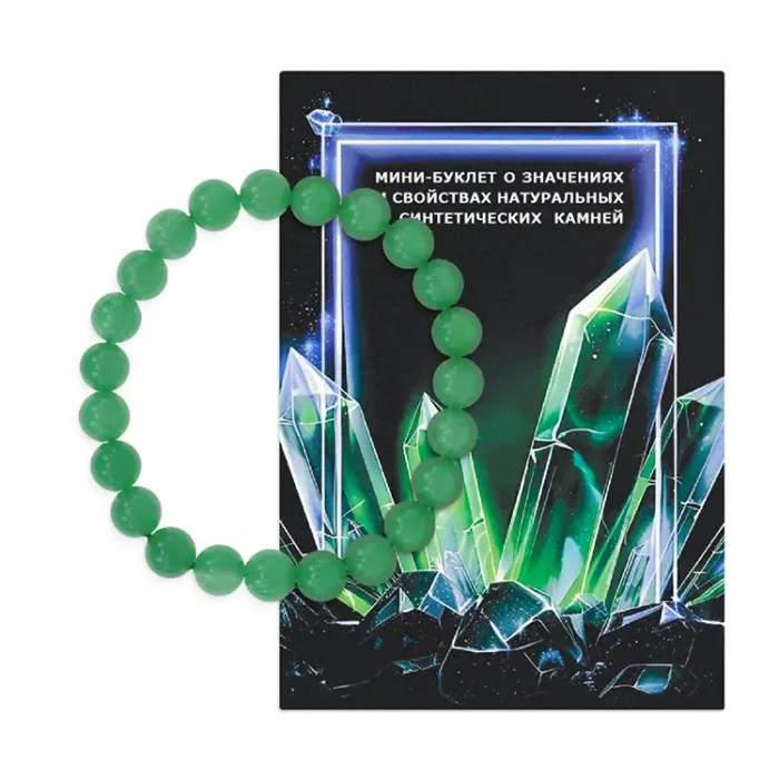 Стрейч-браслет, выполненный вручную из каменных бусин диаметром 8 мм, станет стильным дополнением к любому наряду. Уникальность этого украшения заключается в универсальном буклете, который содержит описания магических свойств натуральных и синтетических камней, а также бусин и подвесок-амулетов. Каждое изделие упаковано в полипропиленовый пакет с европодвесом и снабжено этикеткой с кратким описанием нефрита.