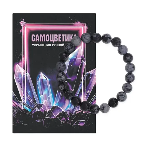 Браслет из нат.камня Обсидиан снежный 8мм BS-SM-08-14
