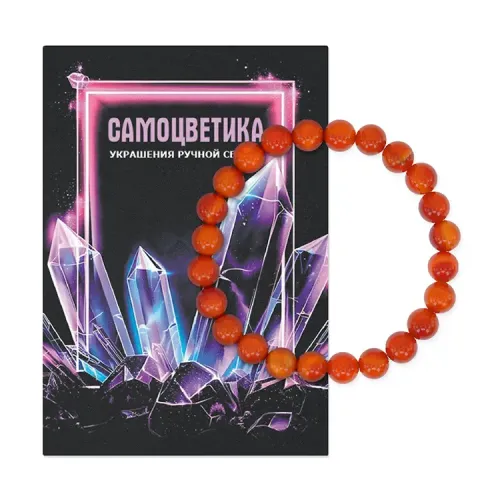 Стрейч-браслет ручной работы из бусин натурального сердолика диаметром 8 мм.
