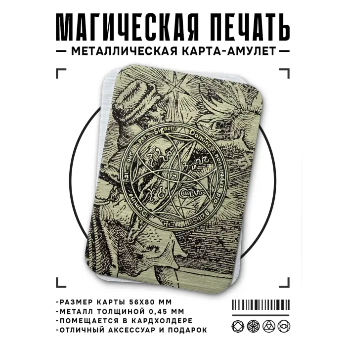 Магическая карта «Амулет Обретения счастья» — это уникальный сувенир, который символизирует защиту от негативного влияния судьбы. Изготовленная из металла толщиной 0,45 мм и имеющая размеры 5,6х8 см, она станет не только красивым украшением, но и мощным оберегом. На карте изображены слова: «Domine fiat opu per signum Domine non tradas pro bebli», которые рекомендуется произносить для активации её силы. Каждая карта упакована в полипропиленовый пакетик с этикеткой, где указано значение символа. Этот амулет традиционно ценится как средство для привлечения удачи и гармонии в жизни.