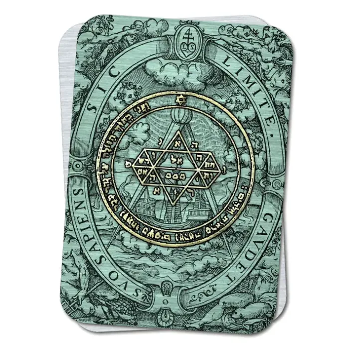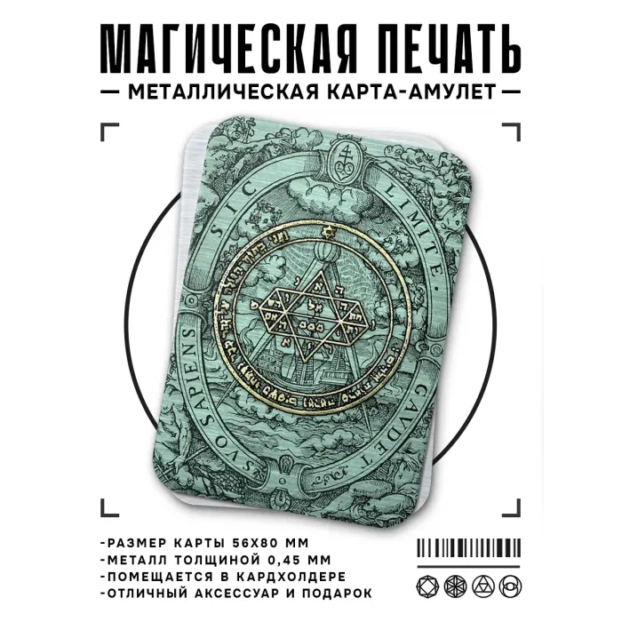 Магическая карта «Амулет видения незримого» — это уникальный предмет, способствующий уверенности в восприятии невидимого. Изготовленная из металла толщиной 0,45 мм и имеющая размеры 5,6х8 см, она украшена Пятым Пентаклем Юпитера, символизирующим величие и силу. Этот амулет традиционно используется для расширения границ восприятия и помогает созерцать недоступное. Каждая карта упакована в полипропиленовый пакетик с этикеткой, на которой указано значение символа, что делает её не только практичным инструментом, но и интересным подарком для ценителей эзотерики.
