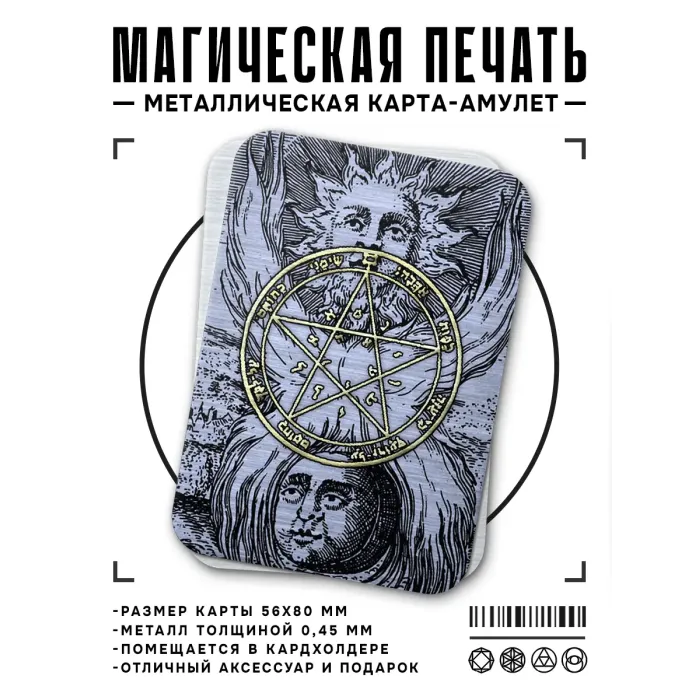 Магическая карта «Амулет исполнения желаний» — это уникальный сувенир, который помогает в осуществлении самых заветных мечт. Изготовленная из металла толщиной 0,45 мм и имеющая размеры 5,6х8 см, она станет не только стильным украшением, но и мощным талисманом. Второй Пентакль Венеры на карте символизирует благоволение и почет, что делает этот амулет особенно ценным для привлечения удачи и успеха. Товар упакован в полипропиленовый пакетик с этикеткой, где указано значение символа, что добавляет дополнительный смысл к подарку или личному использованию. Эта карта традиционно используется как средство для реализации желаний и создания положительной энергетики вокруг себя.