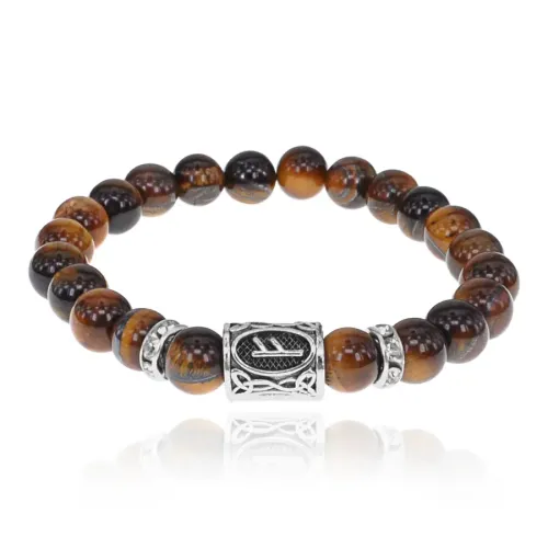 Браслет с руной Феху, Тигровый глаз 8мм BSRCR-001