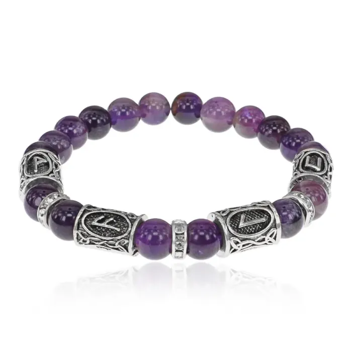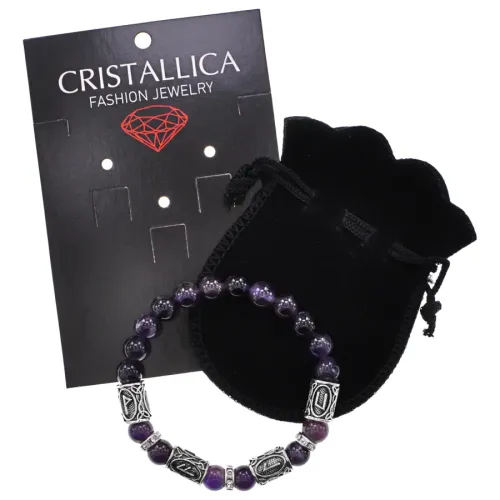 Стрейч-браслет из коллекции Cristallica с бусинами из аметиста диаметром 8 мм и нанесёнными рунами.