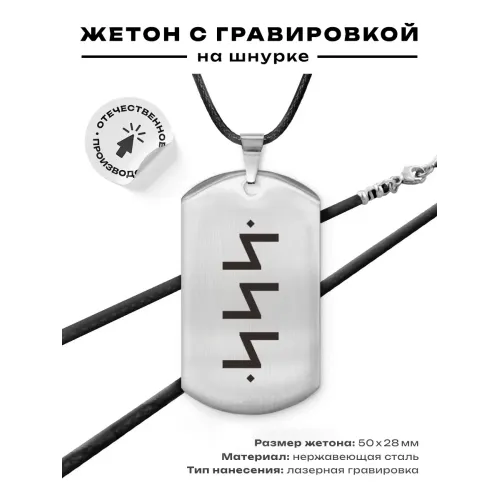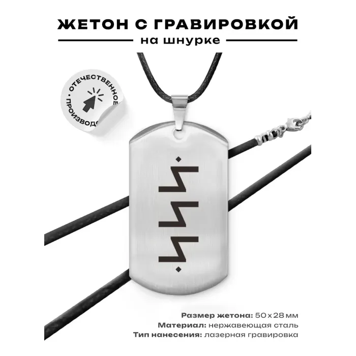 Амулет-жетон со славянской рунической формулой «Сила». Изготовлен из нержавеющей стали.