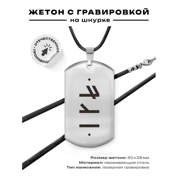 Амулет-жетон из нержавеющей стали со славянской рунической формулой.