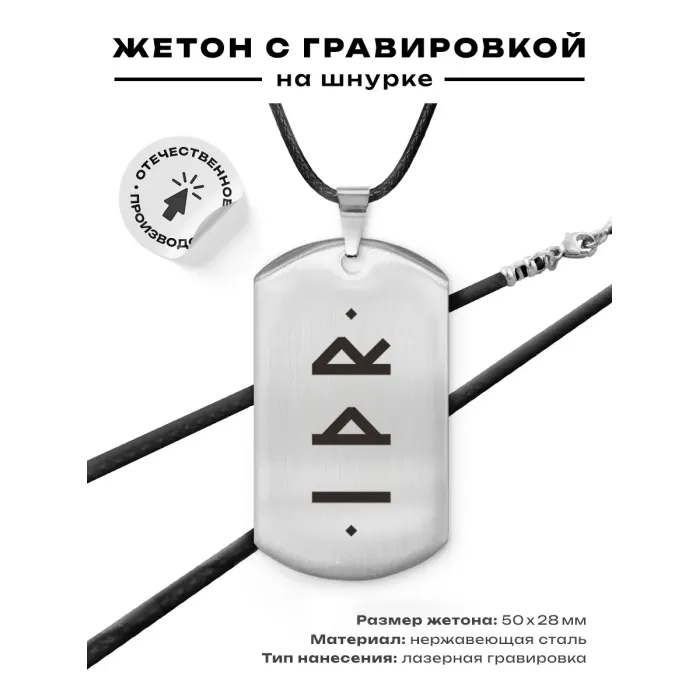 Размеры и комплектация: Размер 50х28 мм. В комплекте шнурок с застёжкой. Упаковка — прозрачный пакет.