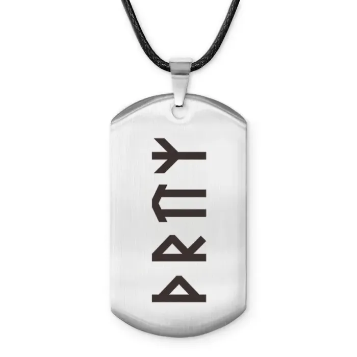 Амулет-жетон из нержавеющей стали со славянской рунической формулой.
