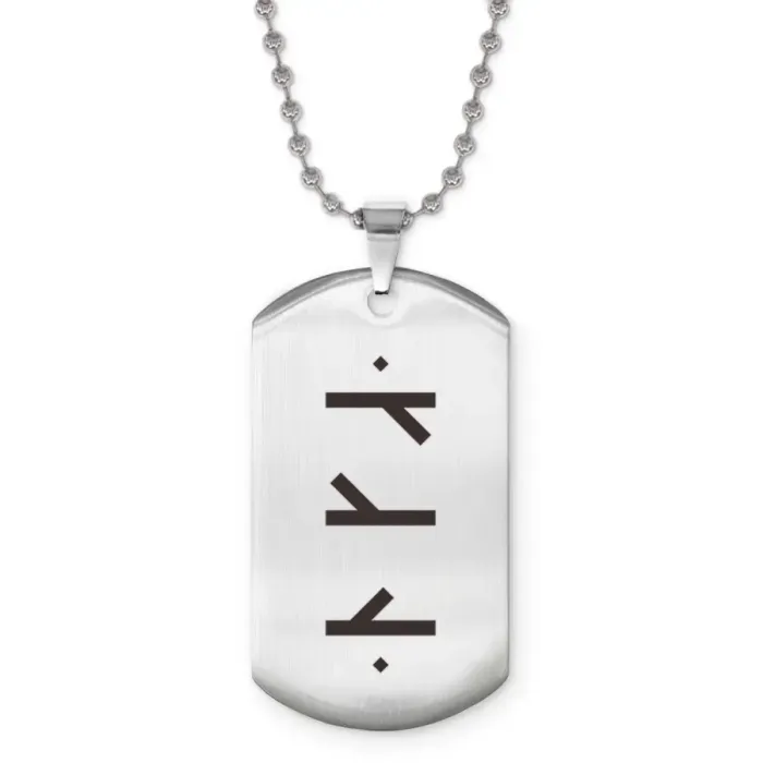 Сувенирный жетон на цепочке с лазерной гравировкой славянской рунической формулы. Изготовлен из нержавеющей стали.