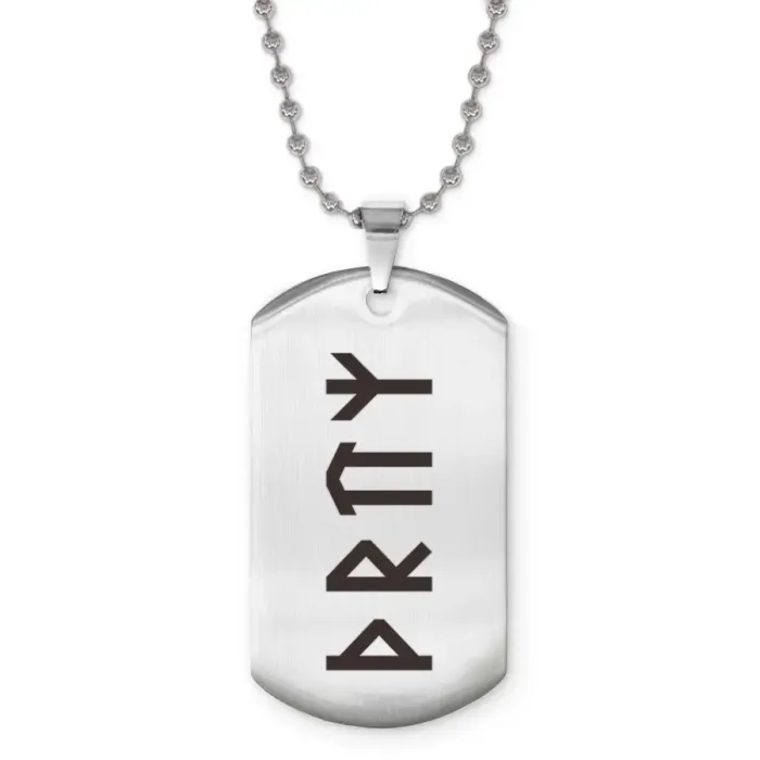 Сувенирный жетон на цепочке из нержавеющей стали с лазерной гравировкой славянских рун.