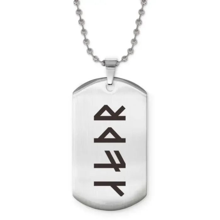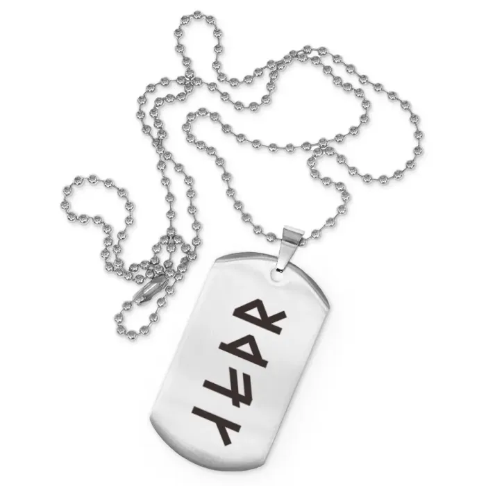 Сувенирный жетон на цепочке из нержавеющей стали с рунической формулой.