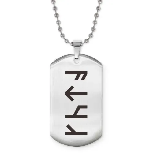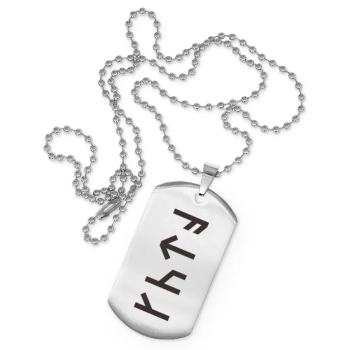 Сувенирный жетон на цепочке из нержавеющей стали с лазерной гравировкой славянской формулы.