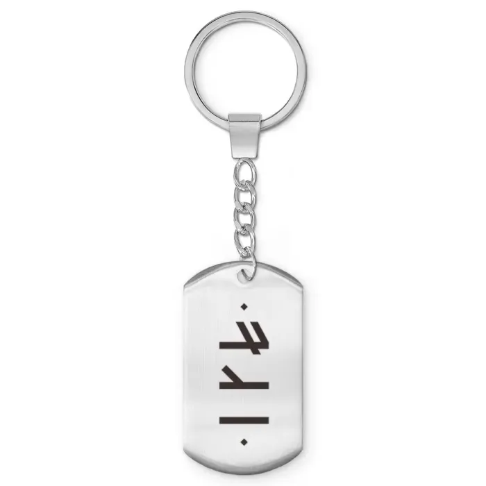 Брелок-жетон из нержавеющей стали с лазерной гравировкой славянской рунической формулы.