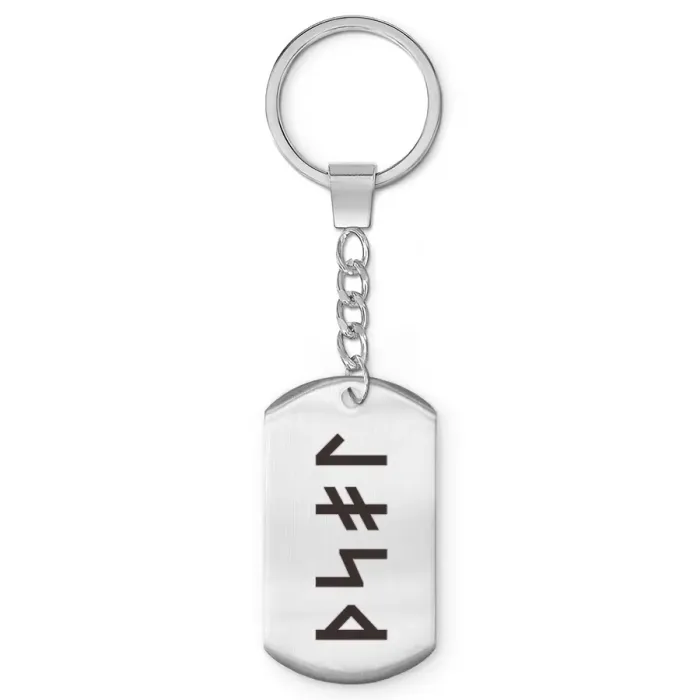 Брелок-жетон из нержавеющей стали с лазерной гравировкой славянской рунической формулы.