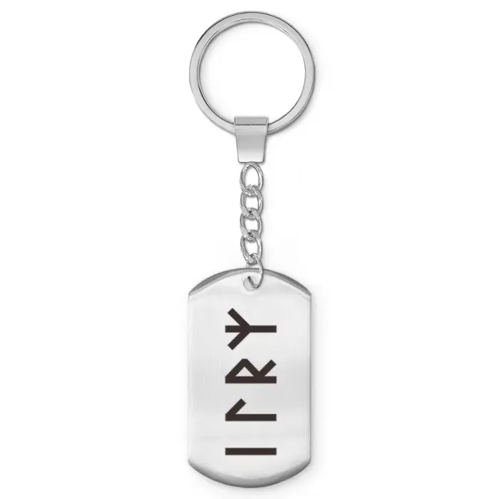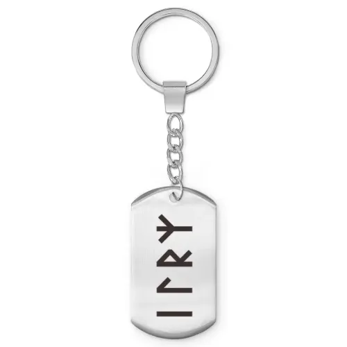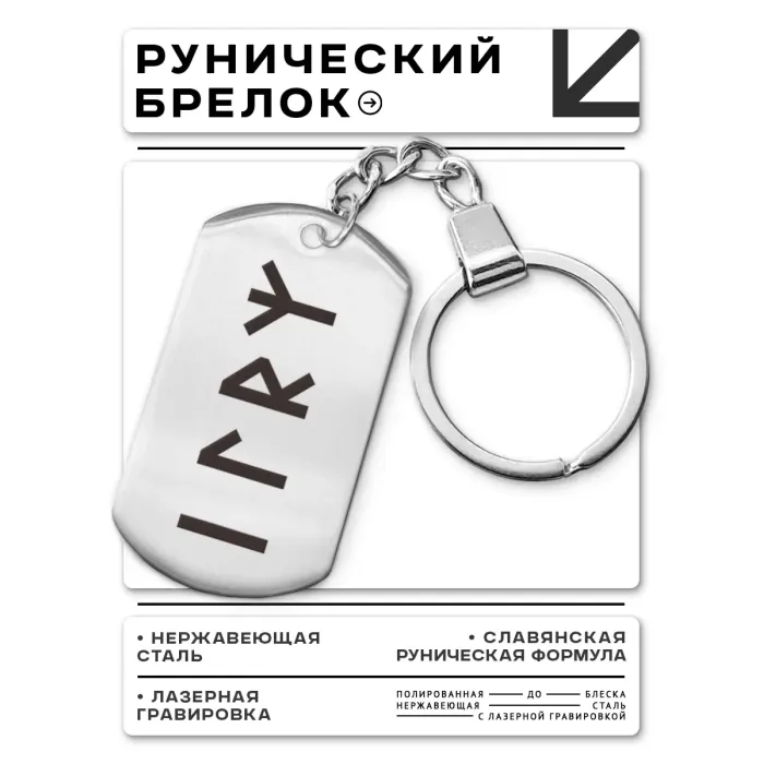 Брелок-жетон из полированной нержавеющей стали с лазерной гравировкой славянской рунической формулы.