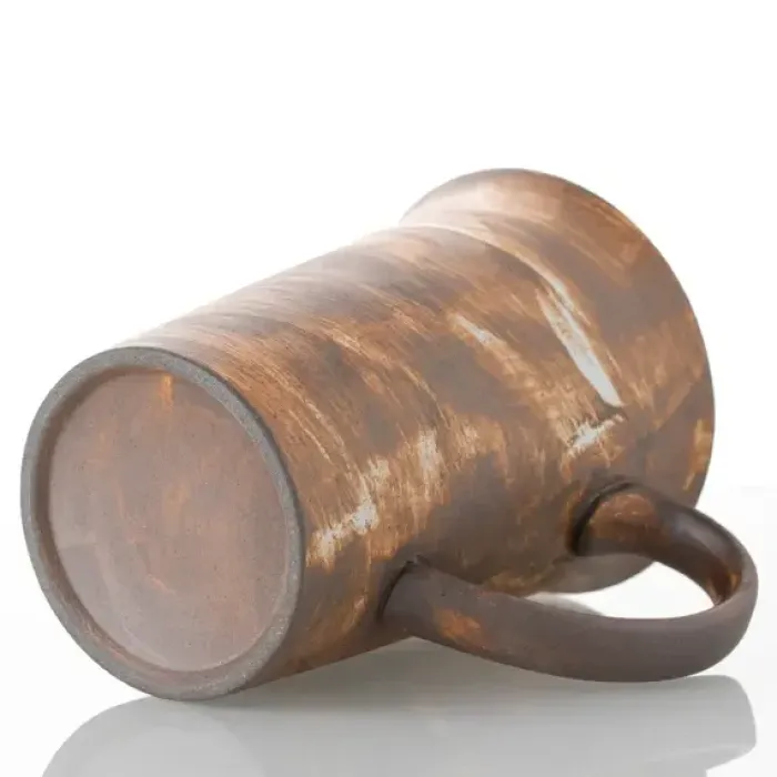 Кружка изготовлена из керамического материала, который обладает теплоизоляционными свойствами. Конструкция включает удобную ручку для комфортного использования.