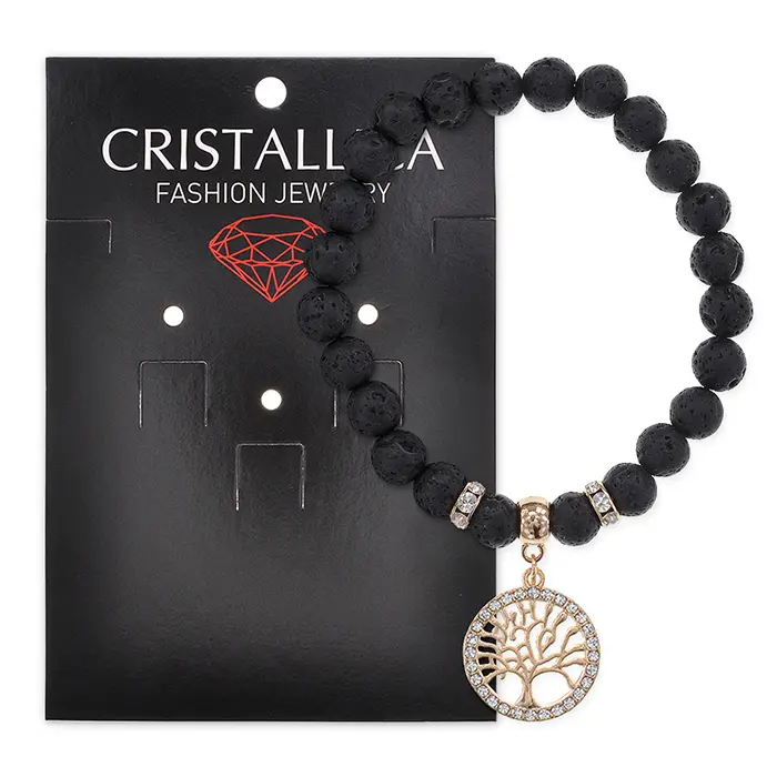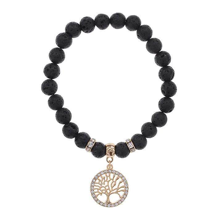 Стрейч-браслет из натурального камня лава с фурнитурой под золото в дизайне «Дерево жизни».