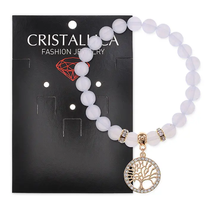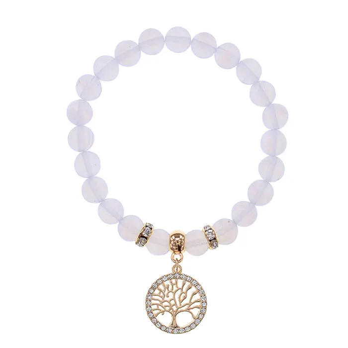 Браслет из синтетического лунного камня с подвеской в виде символа «Дерево жизни».