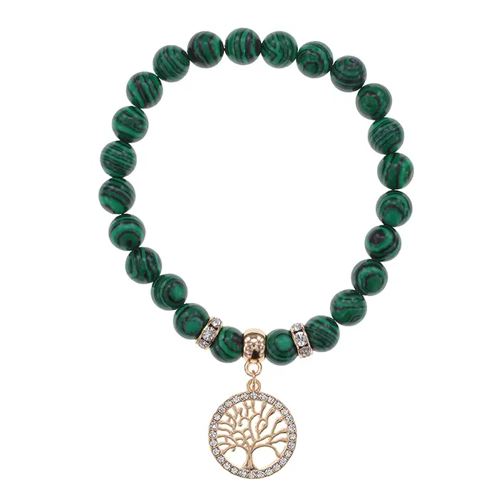 Браслет Дерево жизни (защита и развитие) синт.камень Малахит 8мм BS-CR-0012