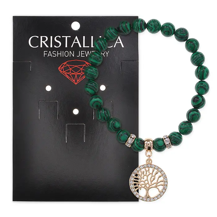 Браслет «Дерево жизни» из коллекции Cristallica. Изготовлен из синтетического камня малахит с фурнитурой светлого золота.