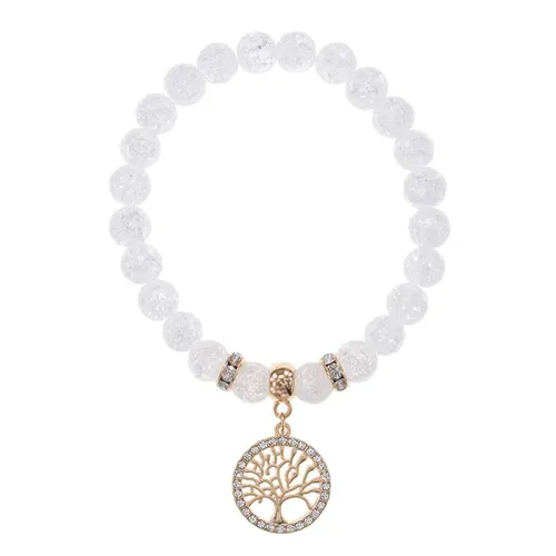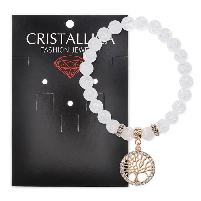 Браслет «Дерево жизни» из коллекции Cristallica. Изделие из синтетического камня сахарный кварц с фурнитурой светлого золота.
