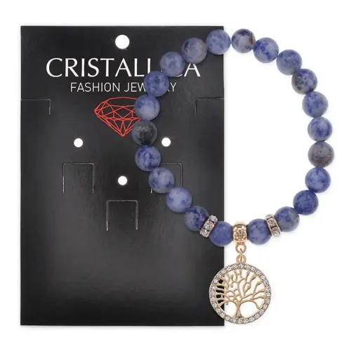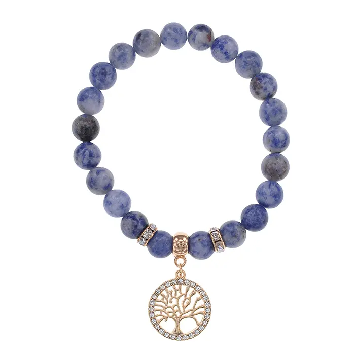 Стрейч-браслет из натурального камня содалит с дизайном «Дерево жизни» и стразами.