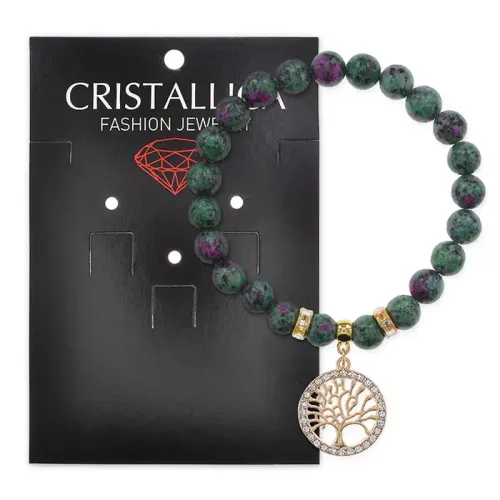 Браслет «Дерево жизни» из синтетического камня цоизит с фурнитурой светлого золота.
