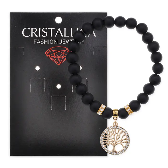 Размеры и комплектация: Диаметр бусин 8 мм, внутренний диаметр браслета ~5.5 см. Упаковка — прозрачный пакет с еврослотом и подложкой.