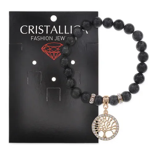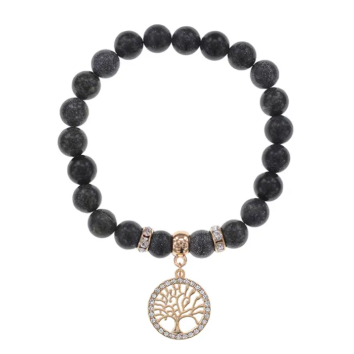 Браслет из натурального камня змеевик с бусинами 8 мм и фурнитурой под золото в дизайне «Дерево жизни».